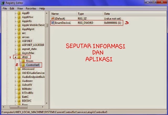 - Setelah anda masuk registry windows cari [HKEY_LOCAL_MACHINE\SYSTEM\CrrentControlSe\services\atapi] .